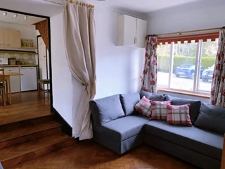 Downstairs, the living room has two sofas in front of the multi-fuel stove, one two-seater and the other a larger L-shaped sofa that converts easily into a double bed. Wifi, satellite TV, games and books are all available, and the multi-fuel stove runs the central heating system and provides hot water (alongside the immersion heater) as well as being a welcoming warmth in the heart of the living room.